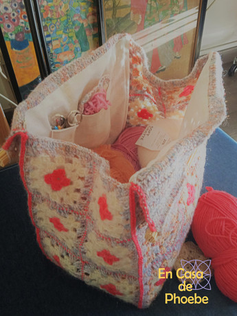 Para unir los grannys entre sí, recurrí a la costura punto a punto con lana y aguja, y para el montaje de la bolsa, a la cadeneta vista. (El mejor tutorial para este tipo de unión lo encontré en INSTAGRAM ).